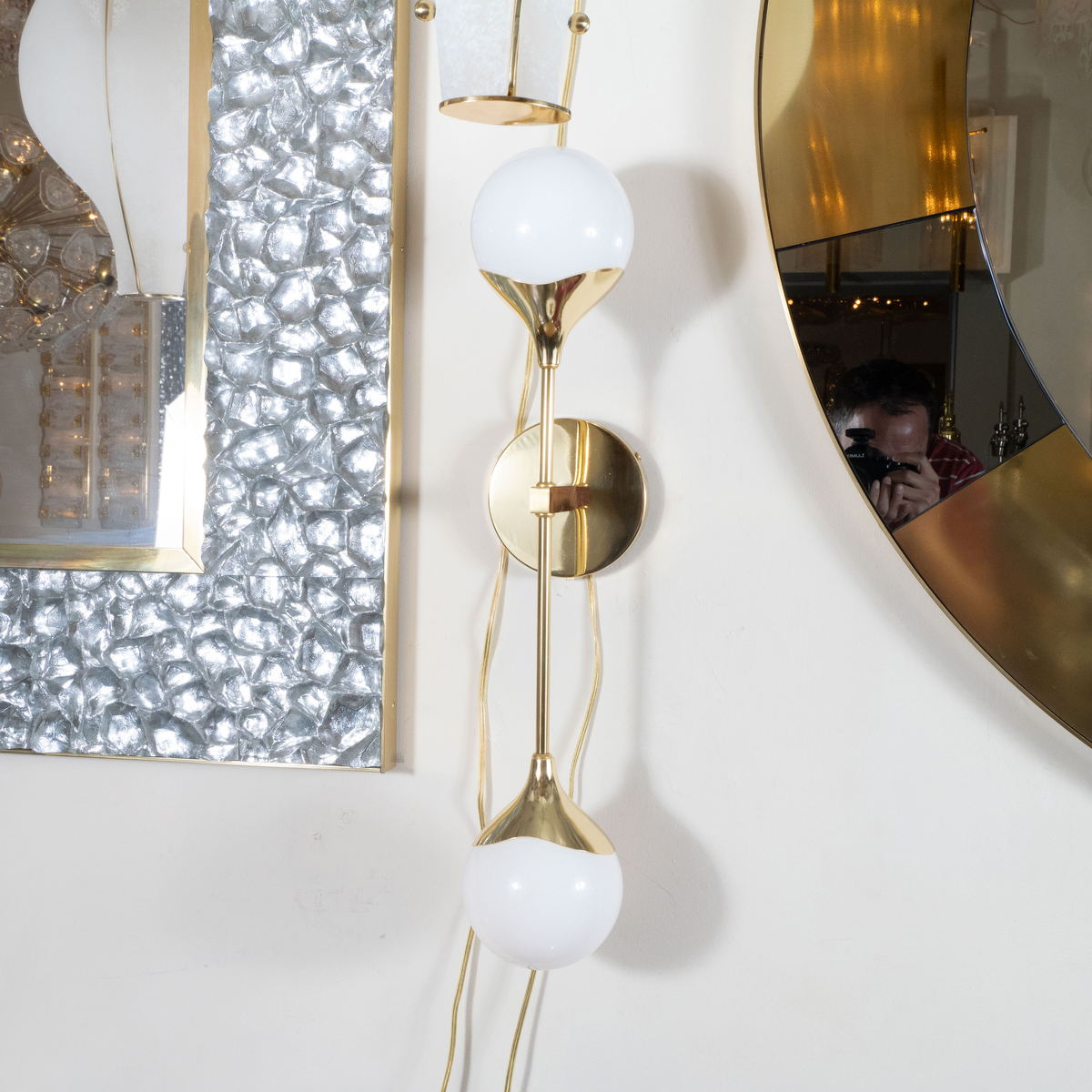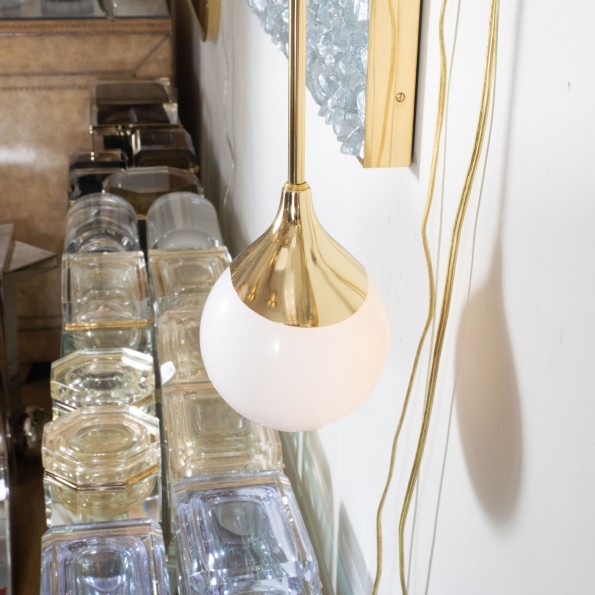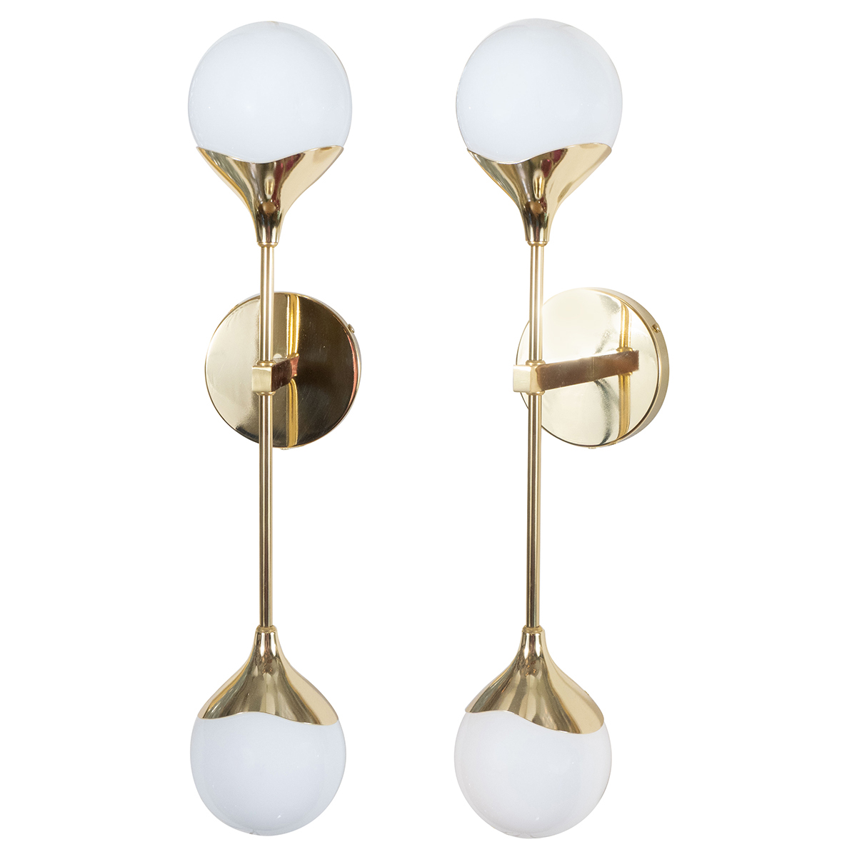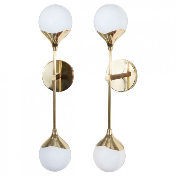 Pair of modern brass and opaque glass sconces