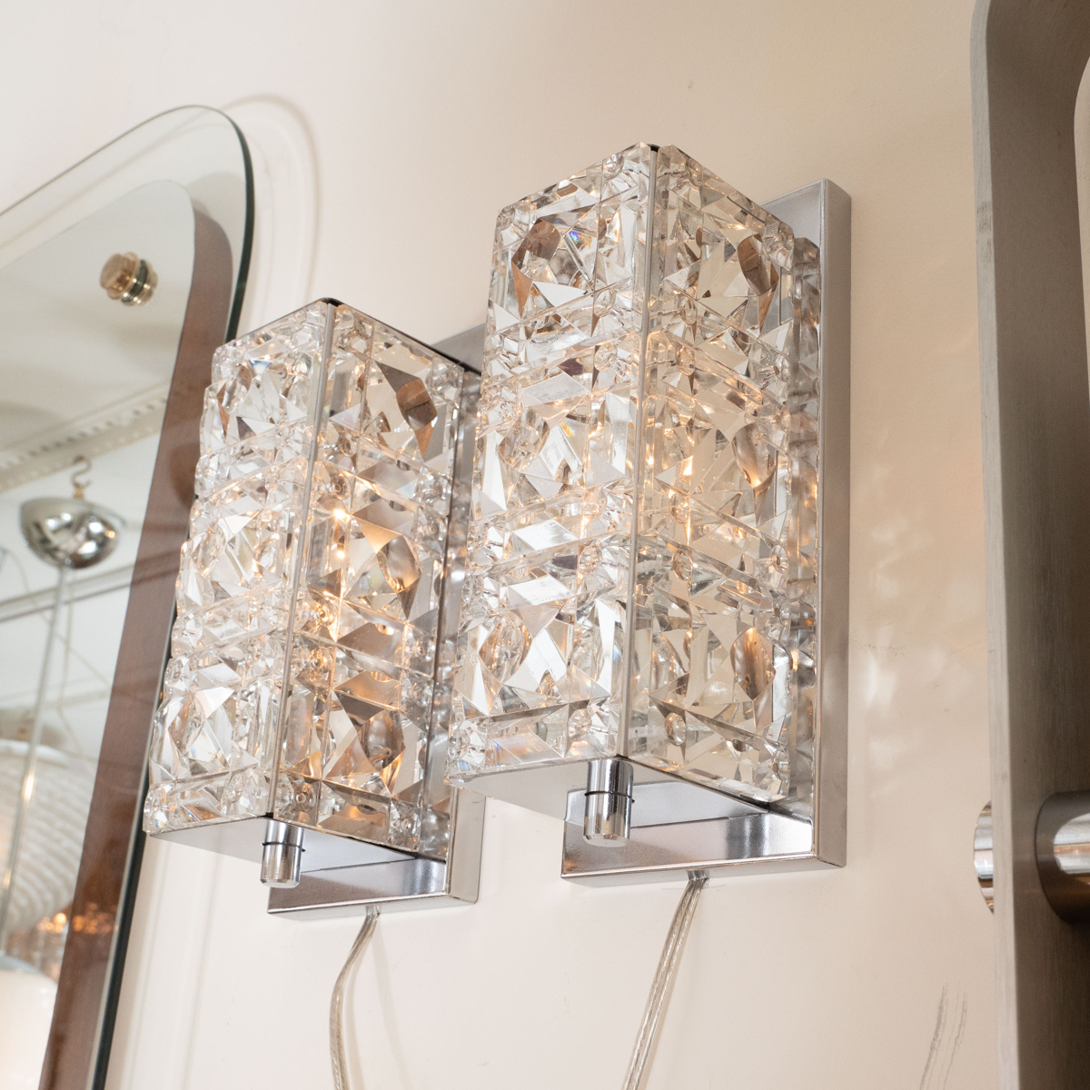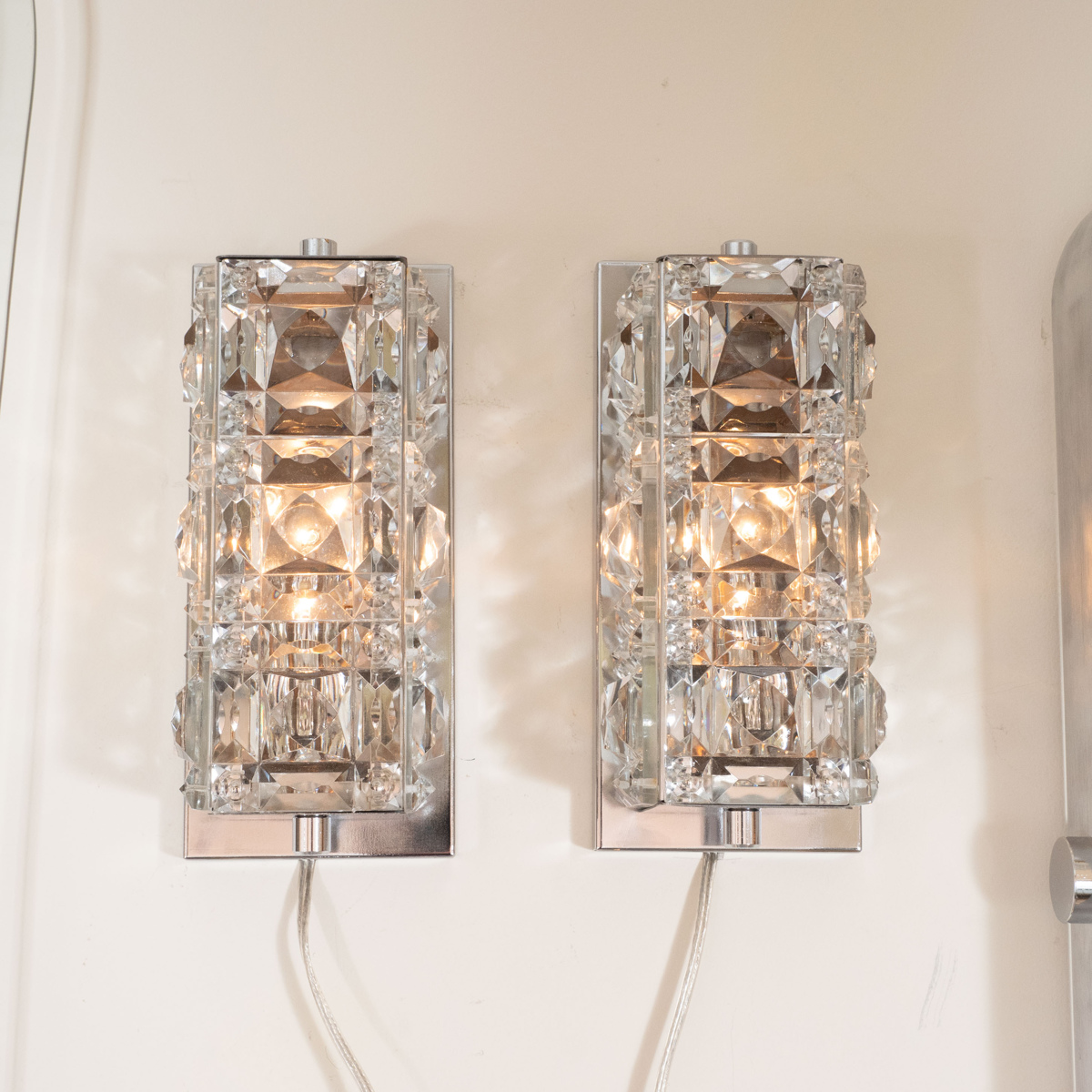 Pair of petite facet cut crystal sconces