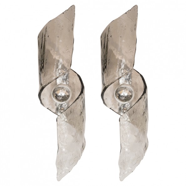 Pair of spiraling Murano glass sconces by Mazzega