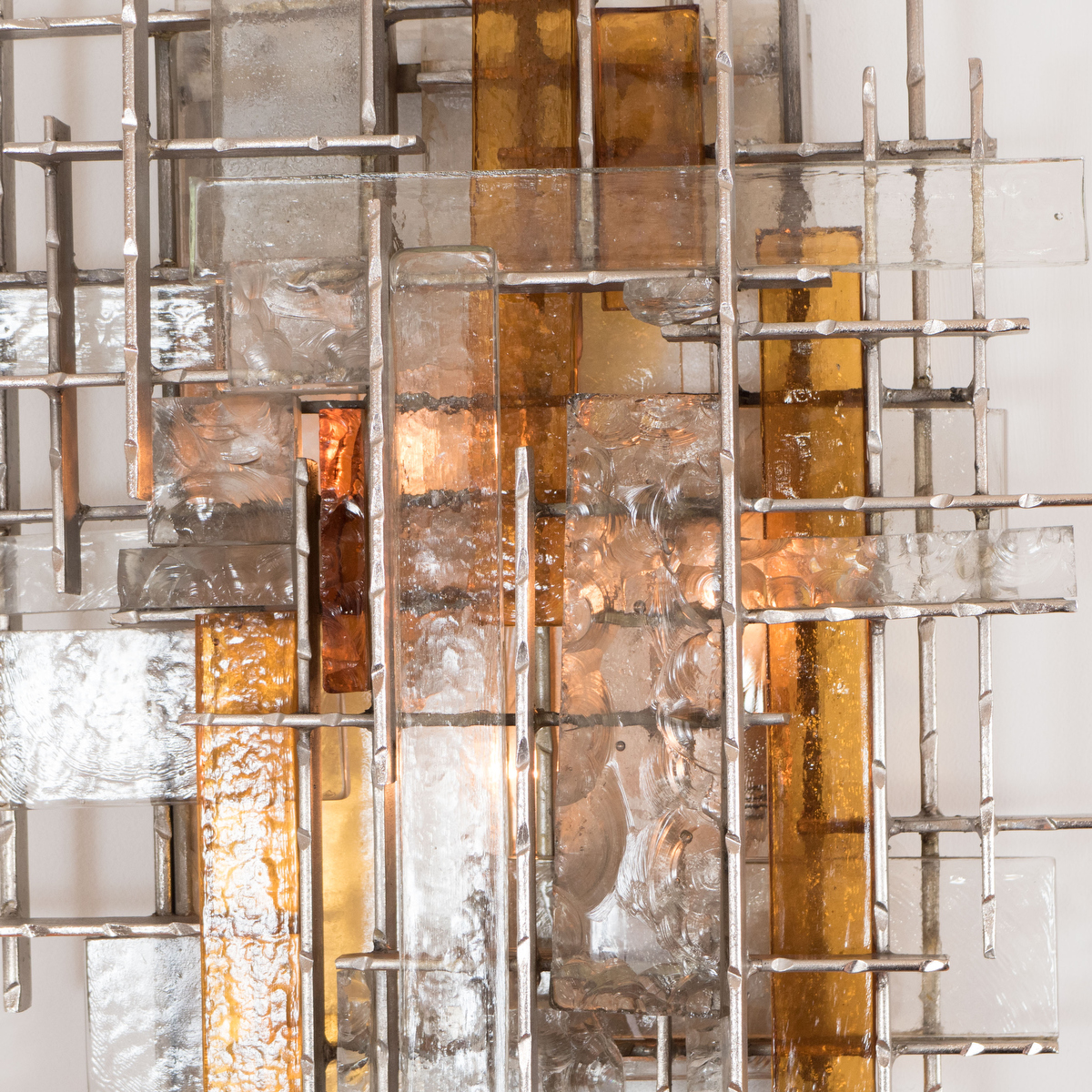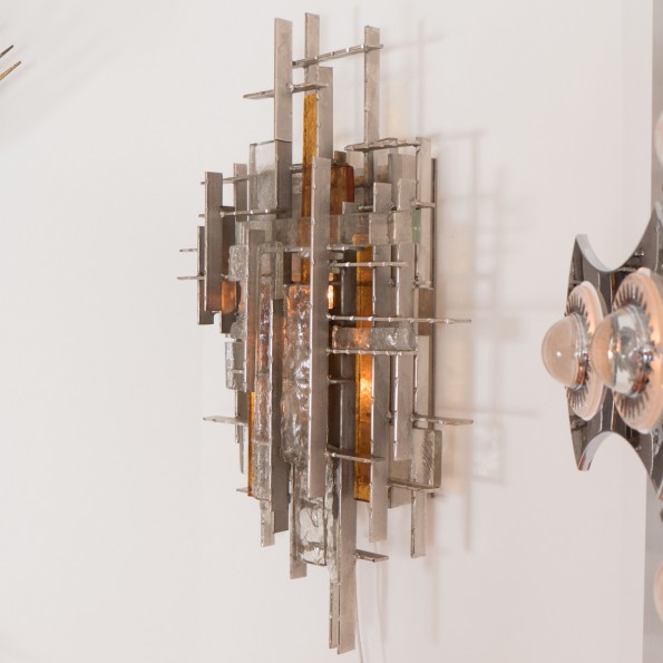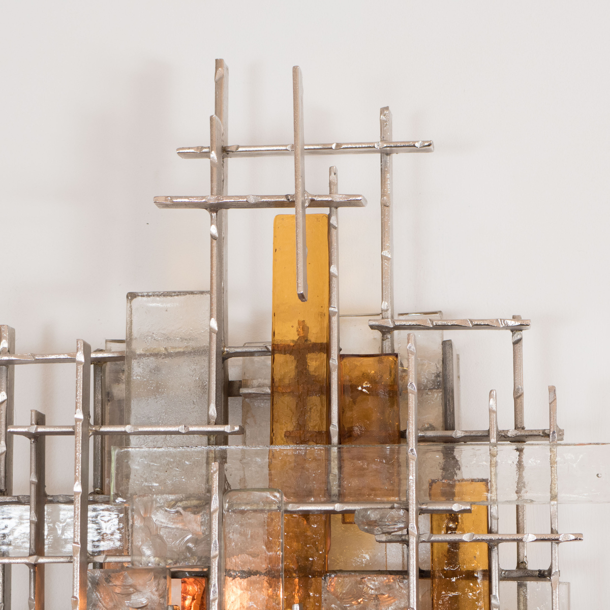 Single chromed steel, amber, and frosted glass sconce by Poliarte
