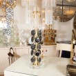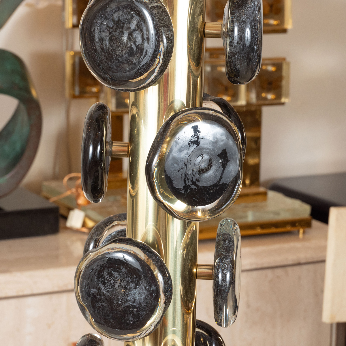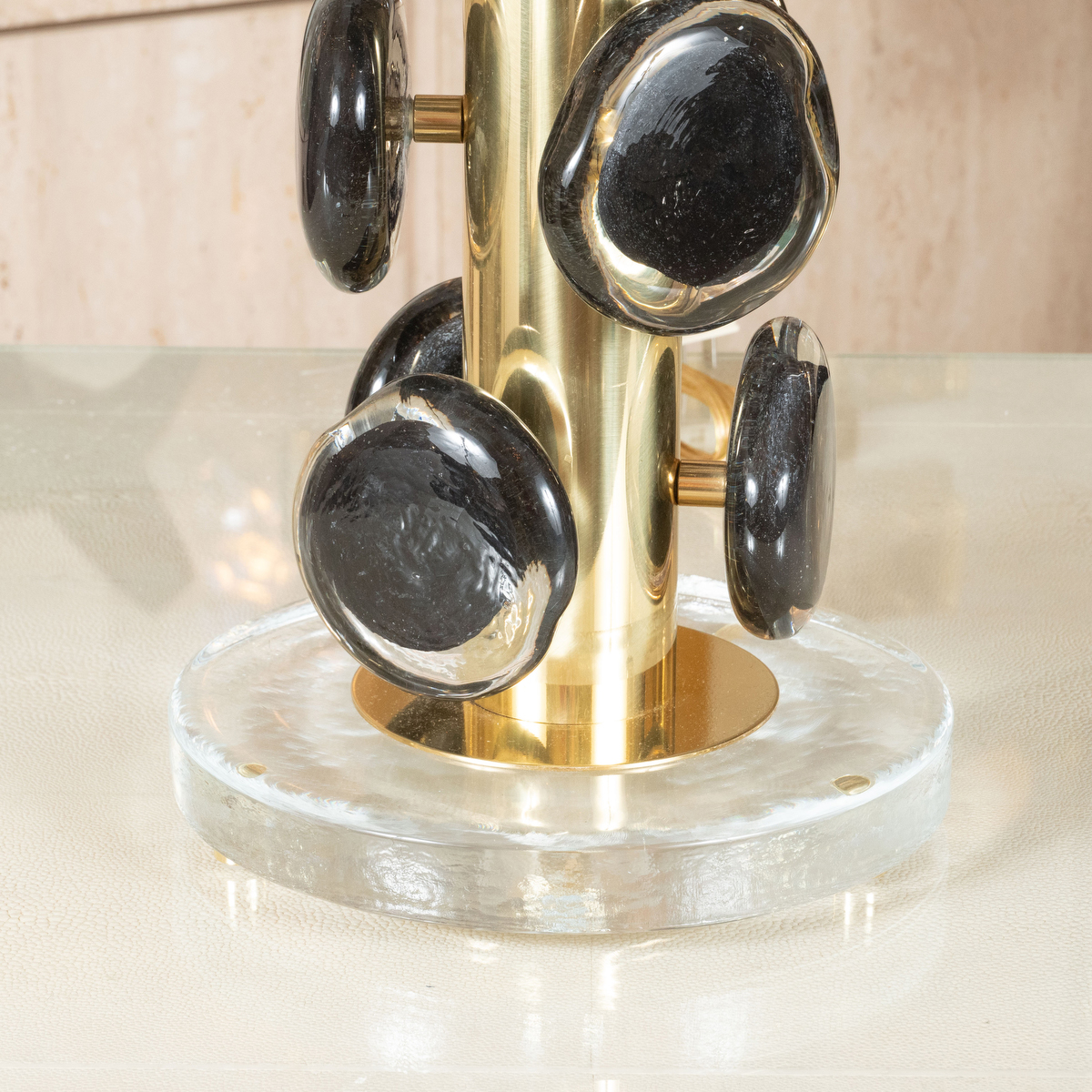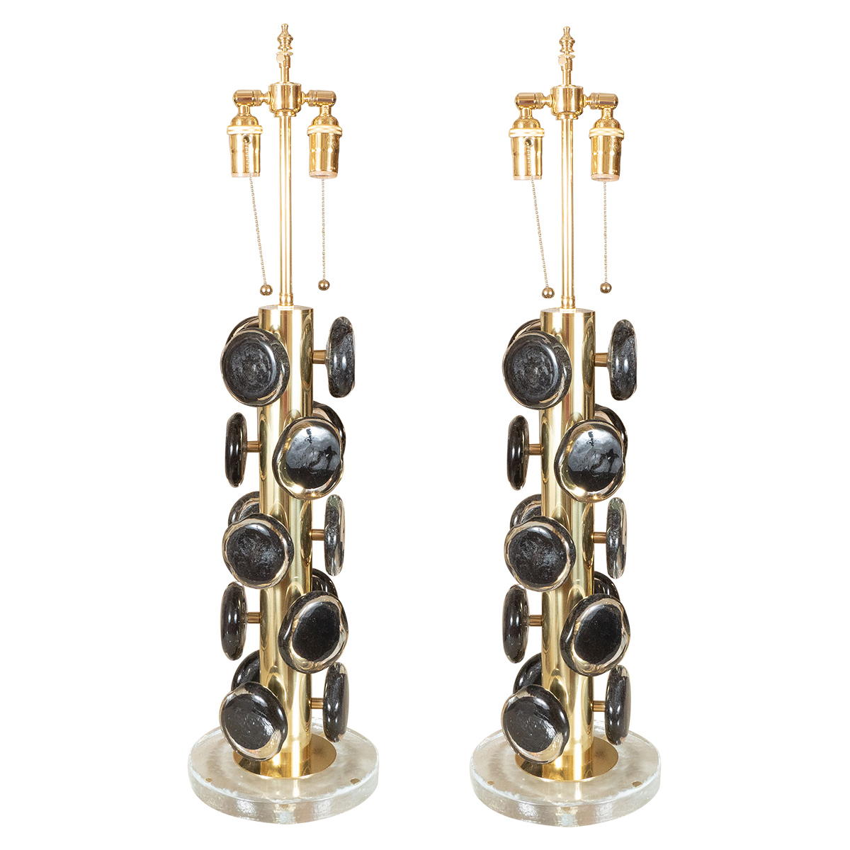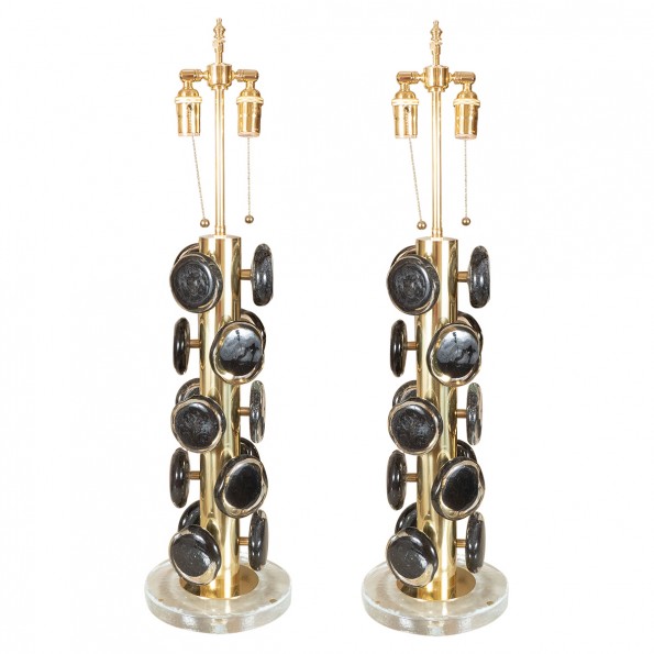 Pair of brass table lamps with Black Murano glass disks