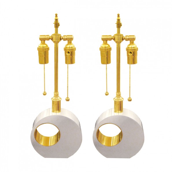Pair of brushed stainless steel curvilinear lamps by Pierre Cardin