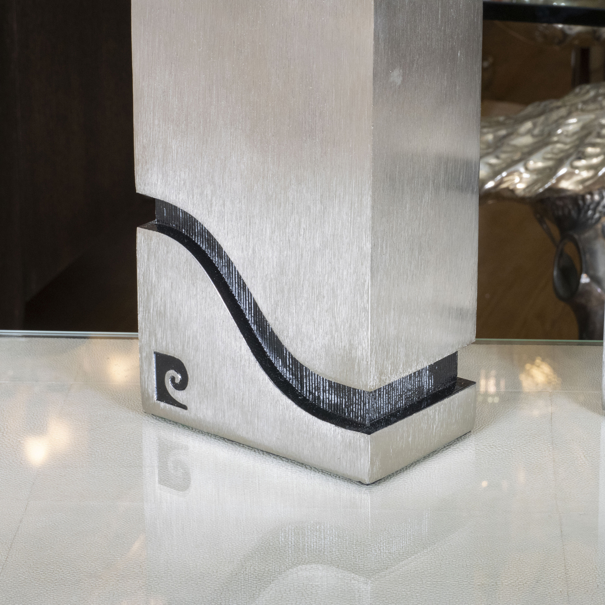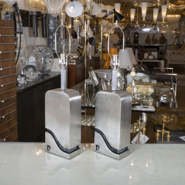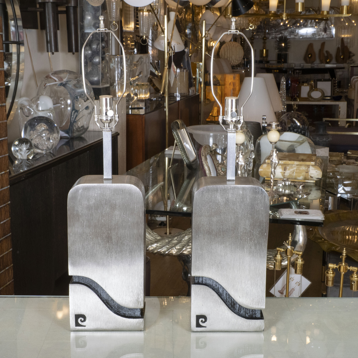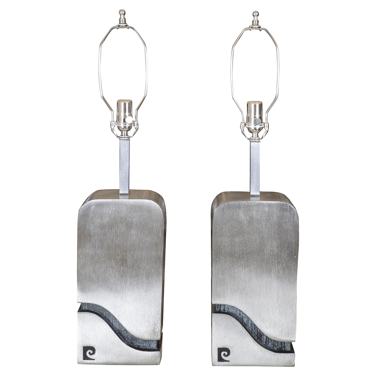 Pair of brushed stainless steel table lamps by Pierre Cardin