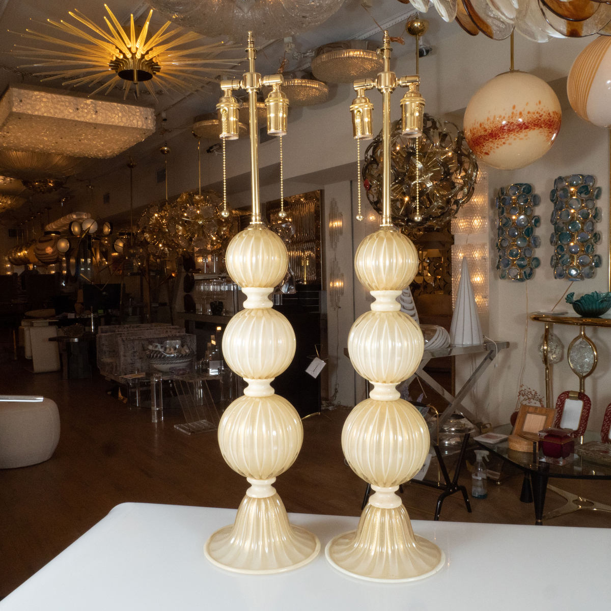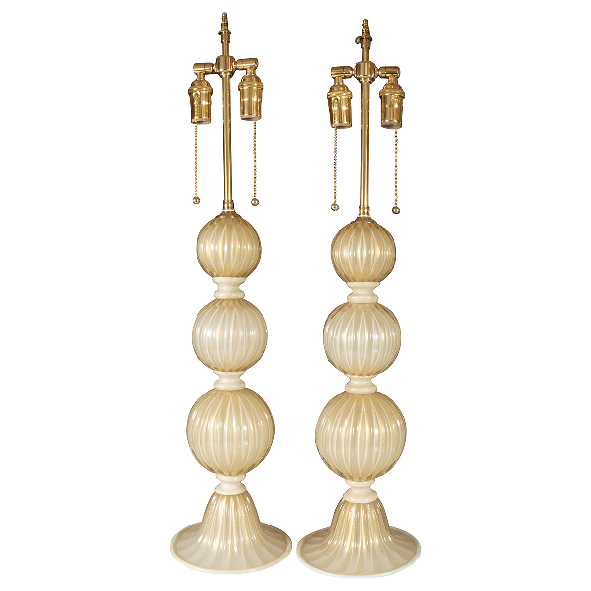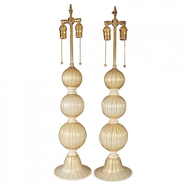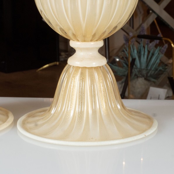 Pair of gold and ivory Murano glass lamps