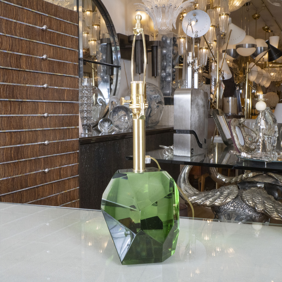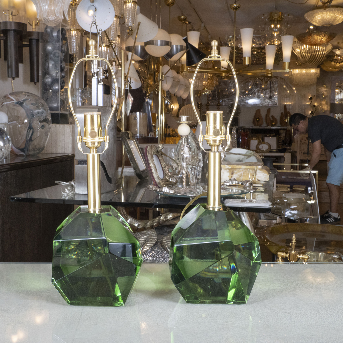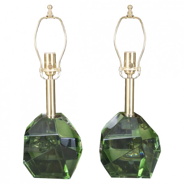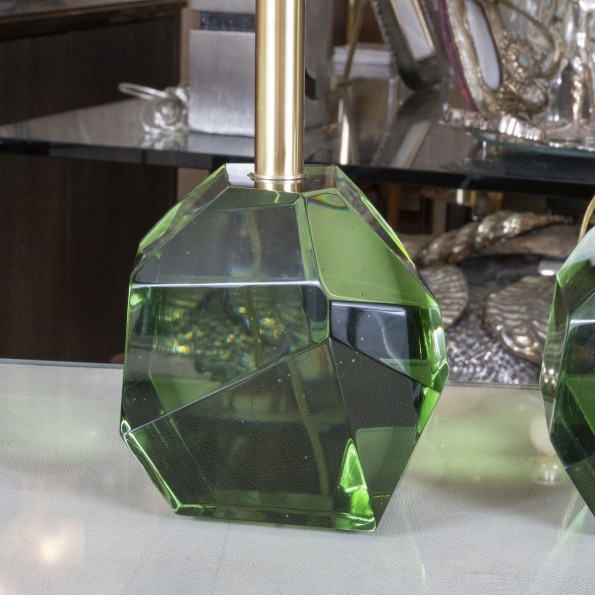 Pair of green facet cut nugget Murano glass lamps