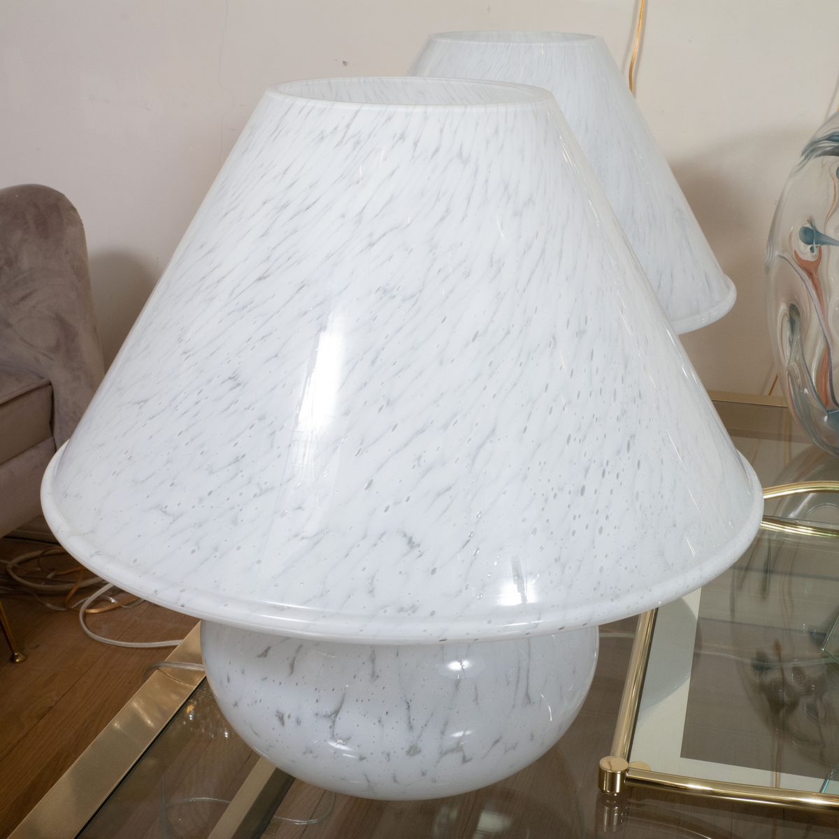 Pair of illuminated lattimo Murano glass table lamps by Limburg