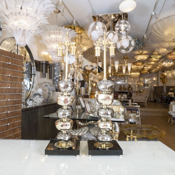 Pair of mixed metal pebble form table lamps