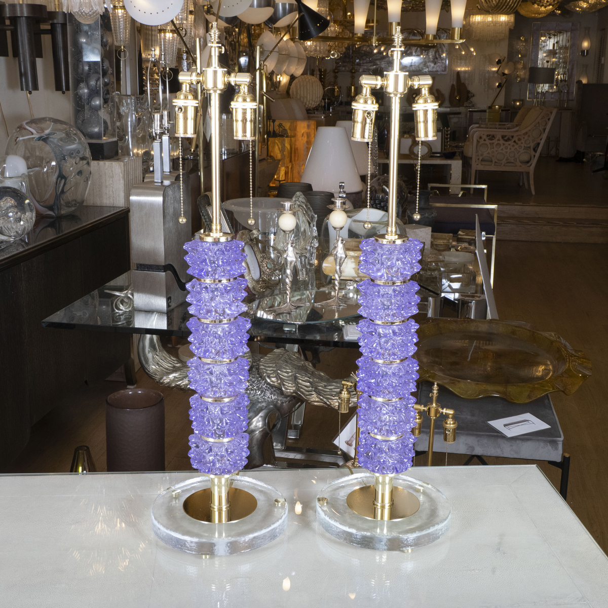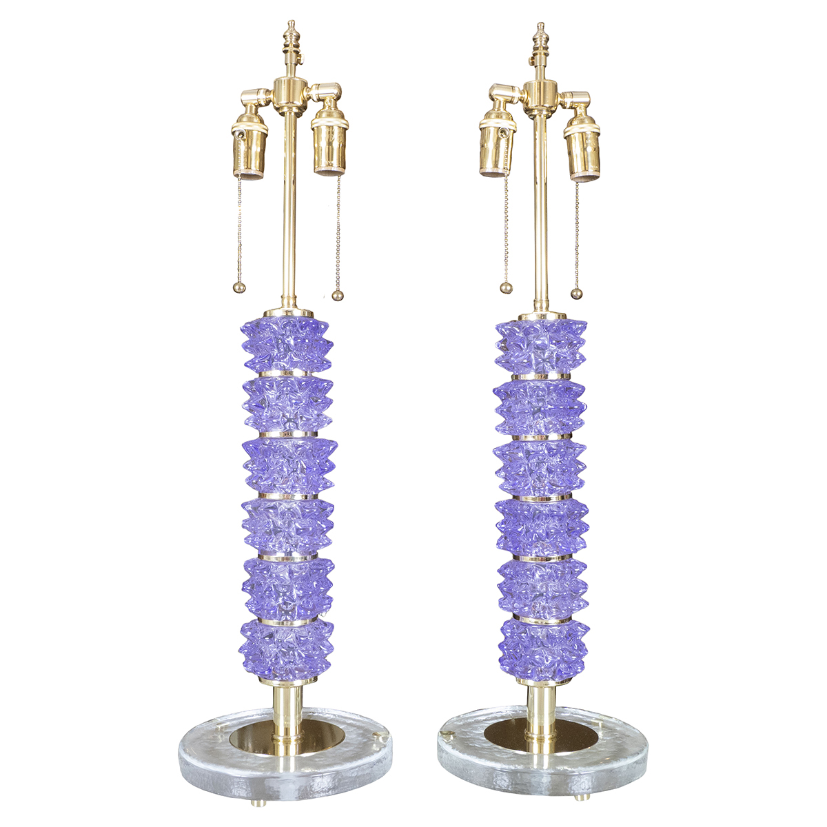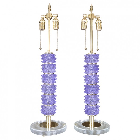 Pair of purple spiked glass table lamps