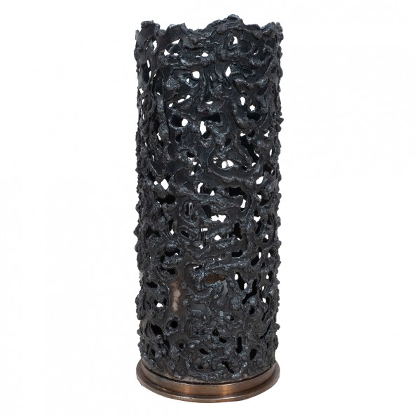 Single brutalist metal cylindrical table lamp by Brother Mel Meyer