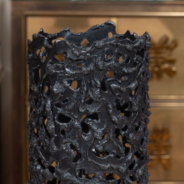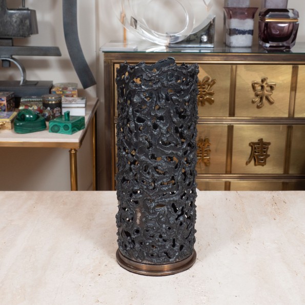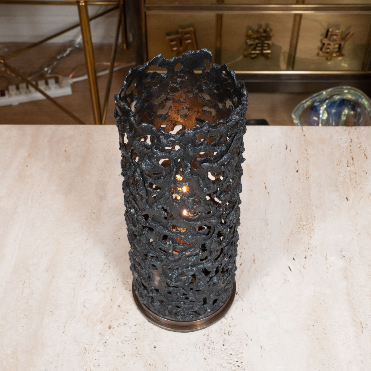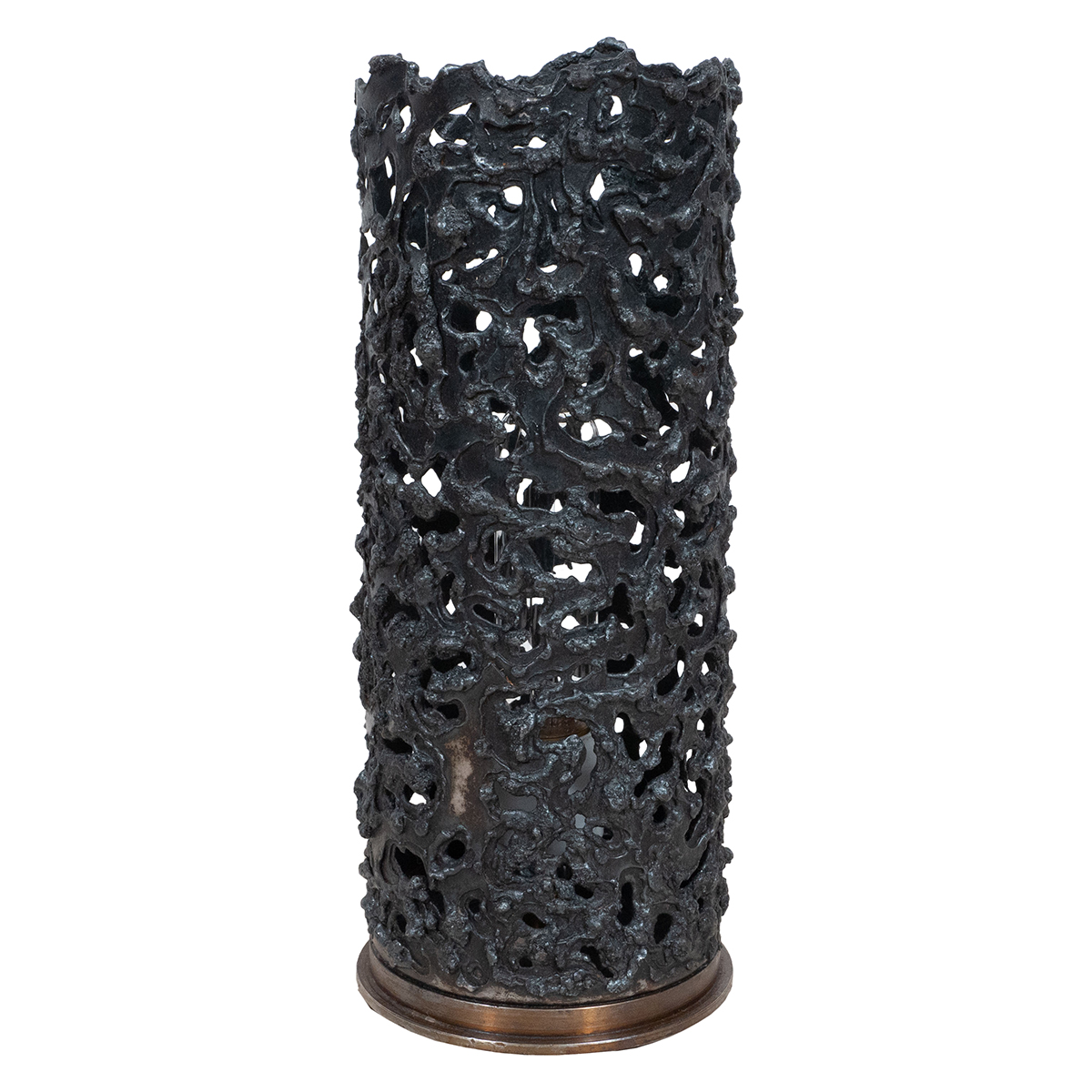 Single brutalist metal cylindrical table lamp by Brother Mel Meyer