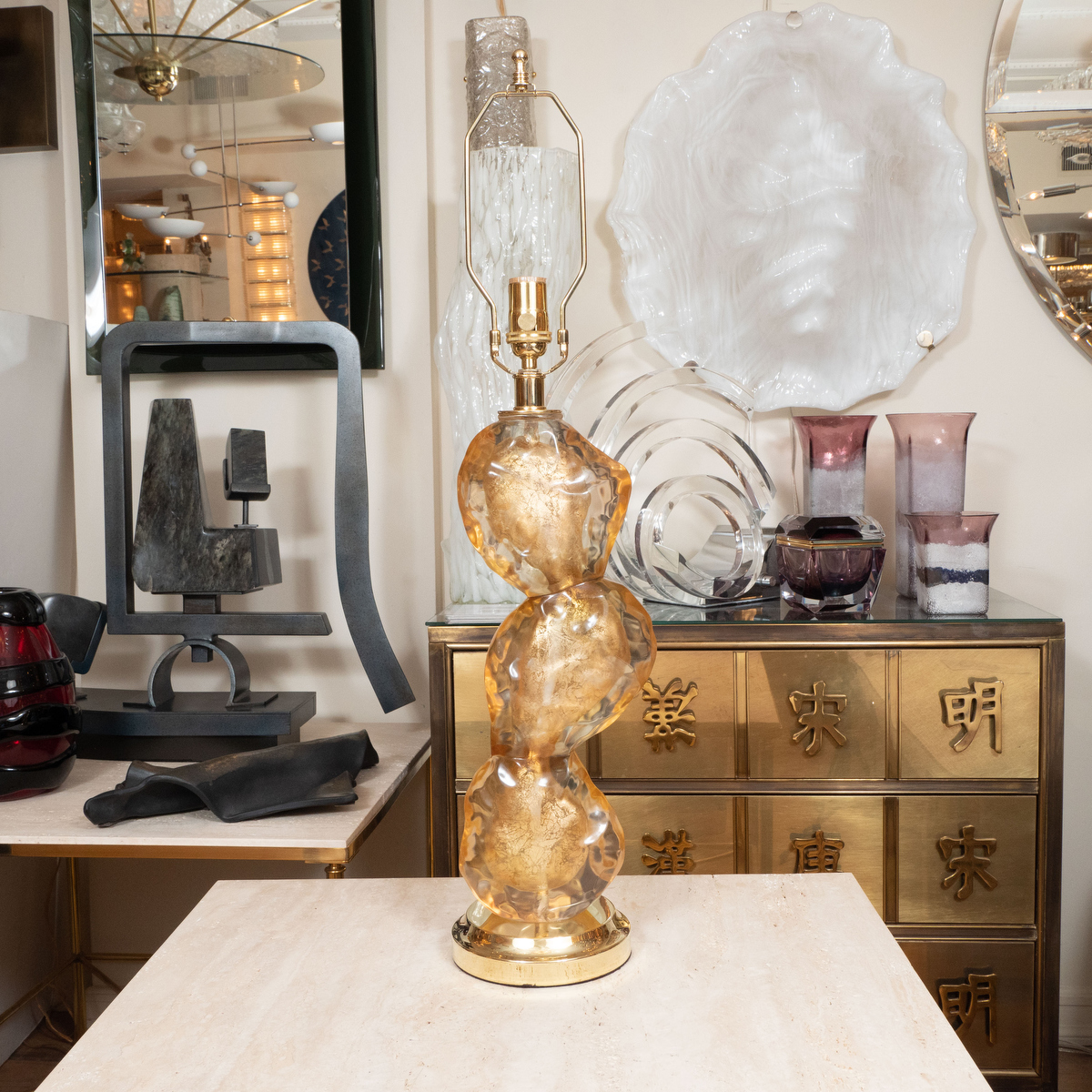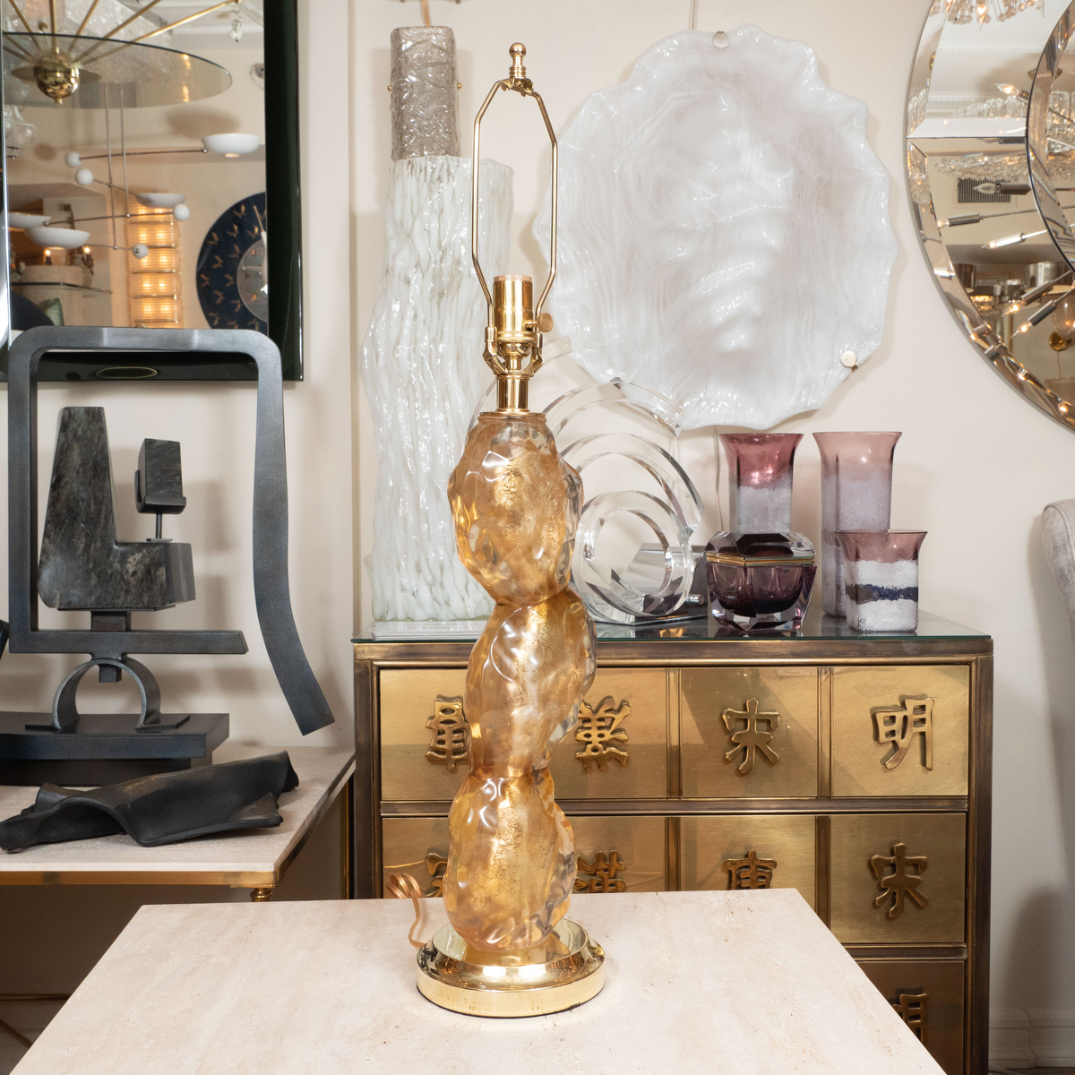 Single golden resin disk lamp