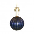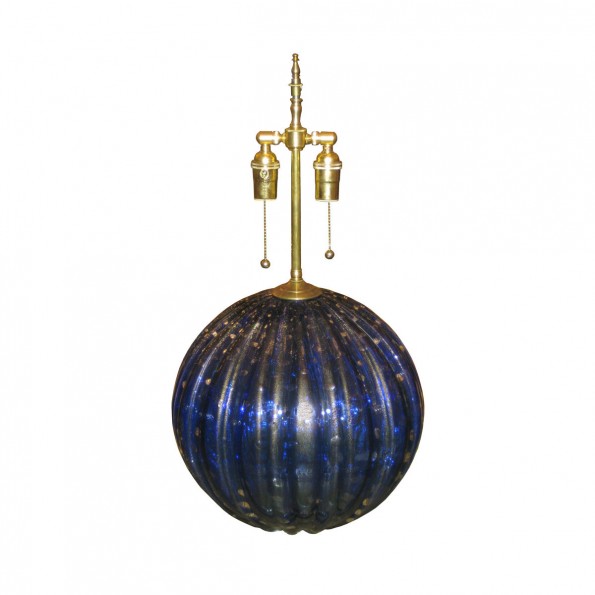 Single spherical fluted cobalt colored Murano glass lamp with inclusive air bubbles