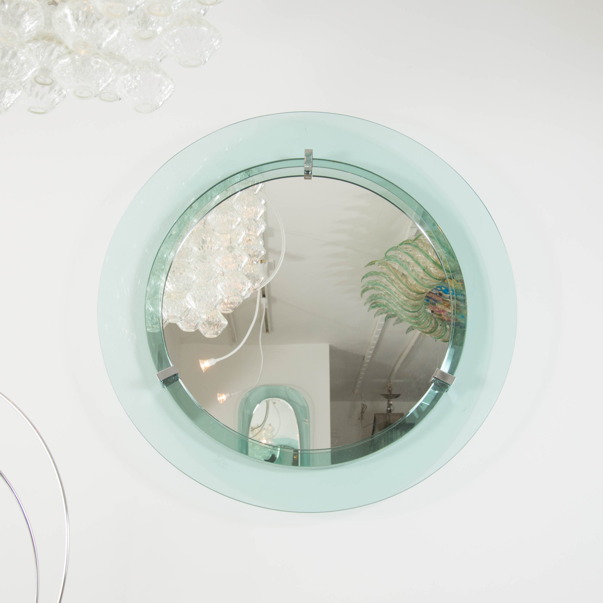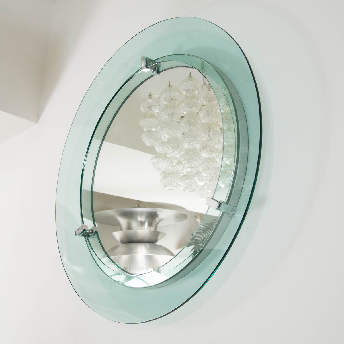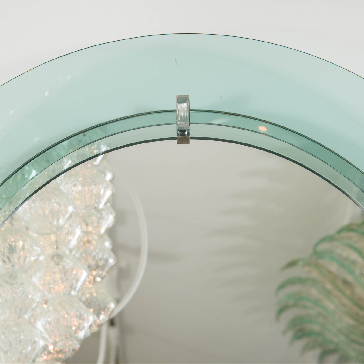Circular mirror with pale green glass surround