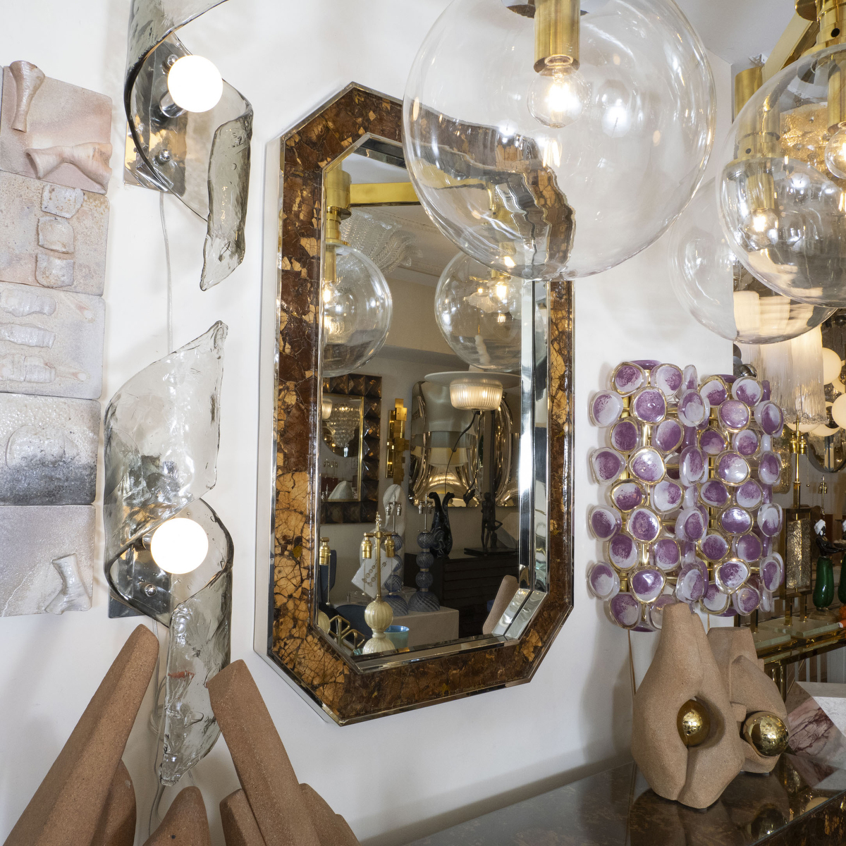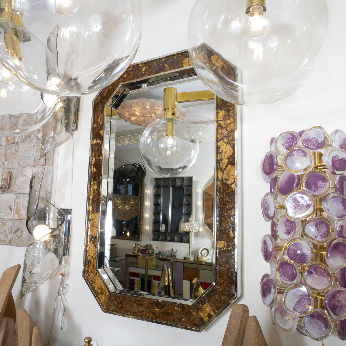 Octagonal chrome and coconut mirror
