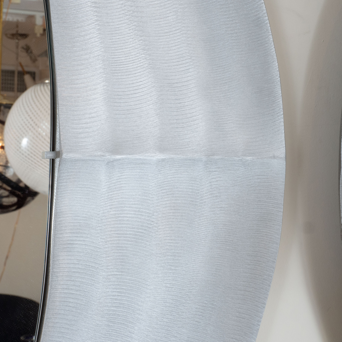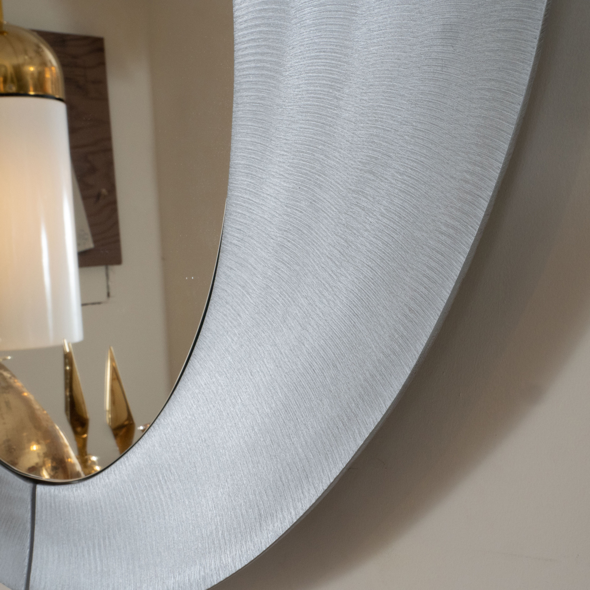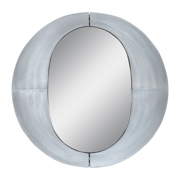 Oval mirror with circular textured aluminum surround by Burchiellaro