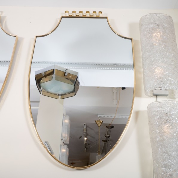 Shield form brass surround mirror