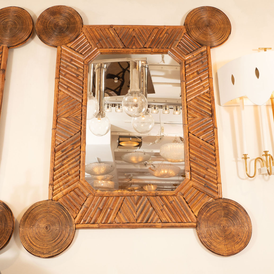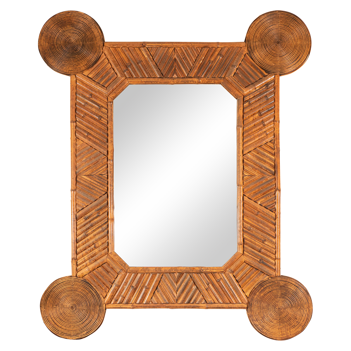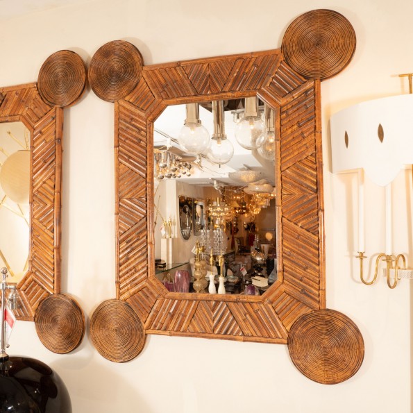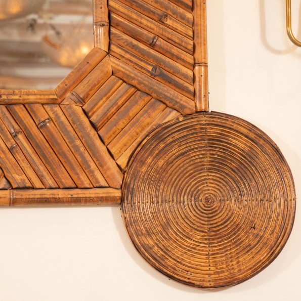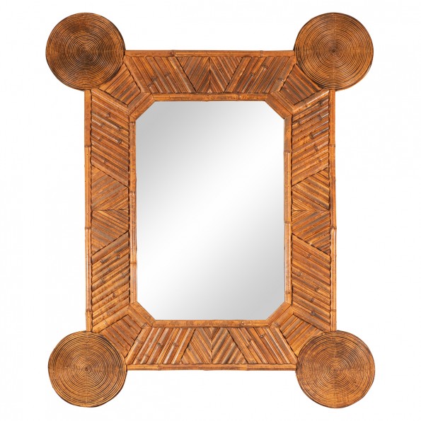 Unusual mirror with intricate bamboo surround