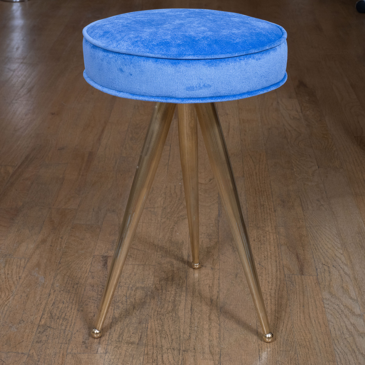 Pair of petite tripod brass stools