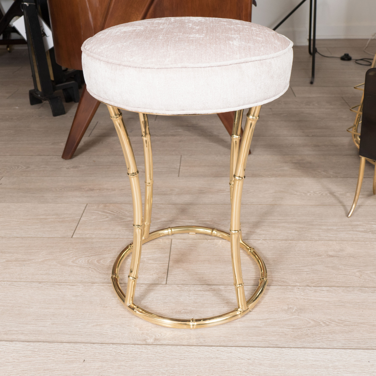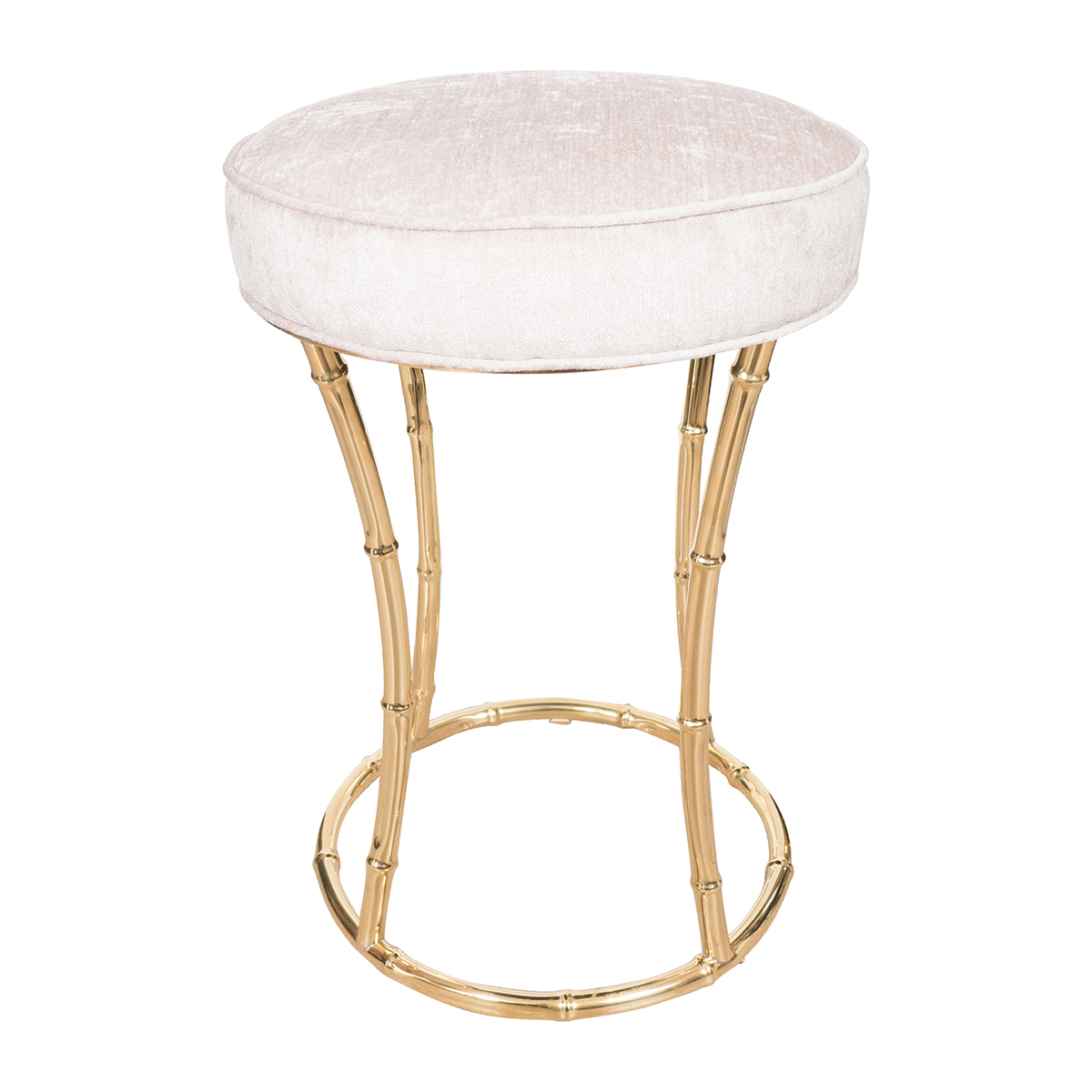 Petite circular brass stool with faux bamboo base
