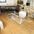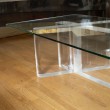 Rectangular glass coffee table with lucite "cross" by Lion in Frost