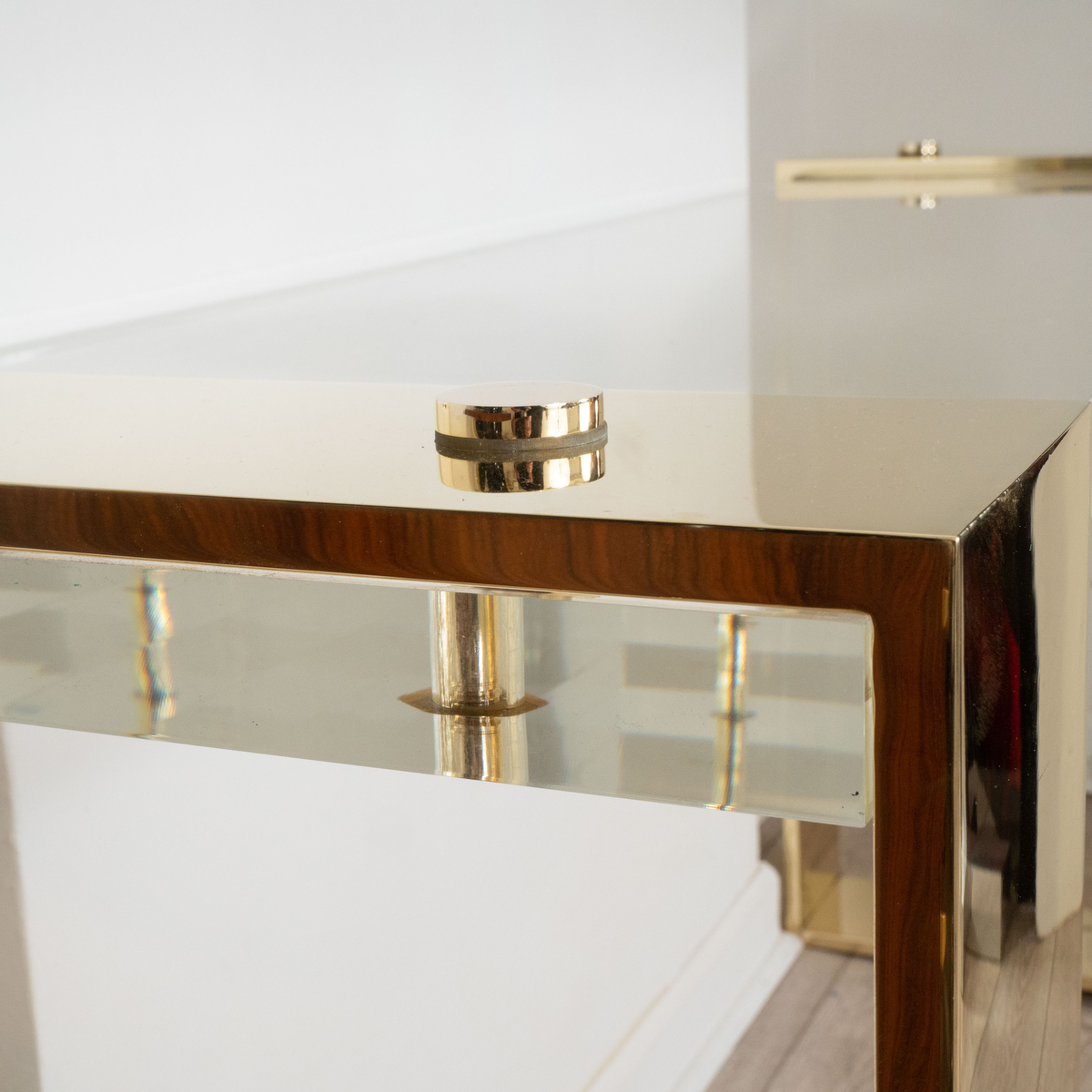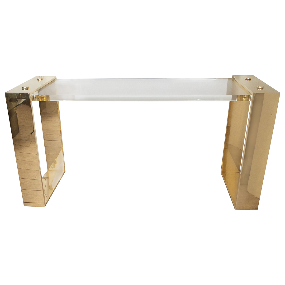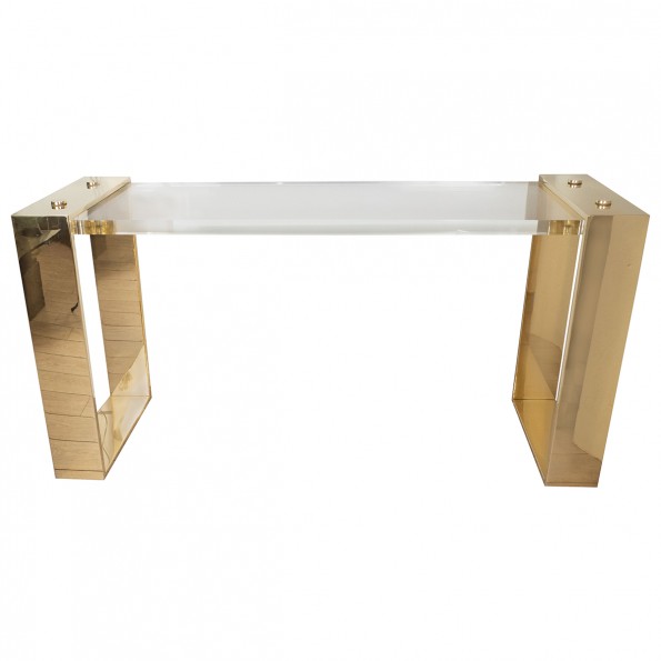 Lucite and brass console table