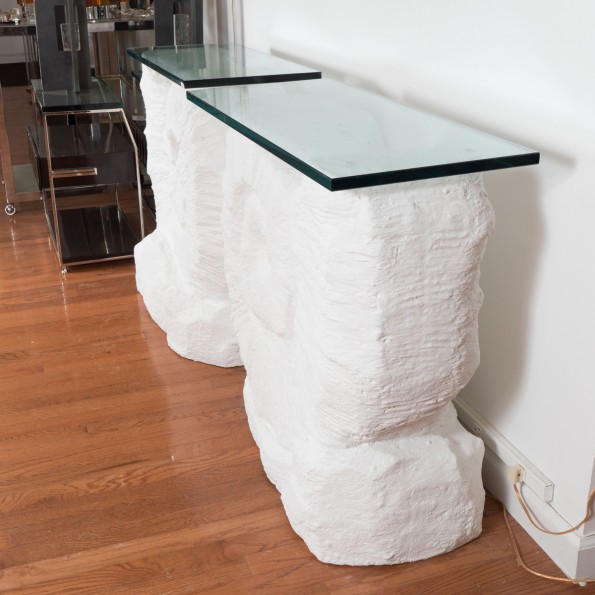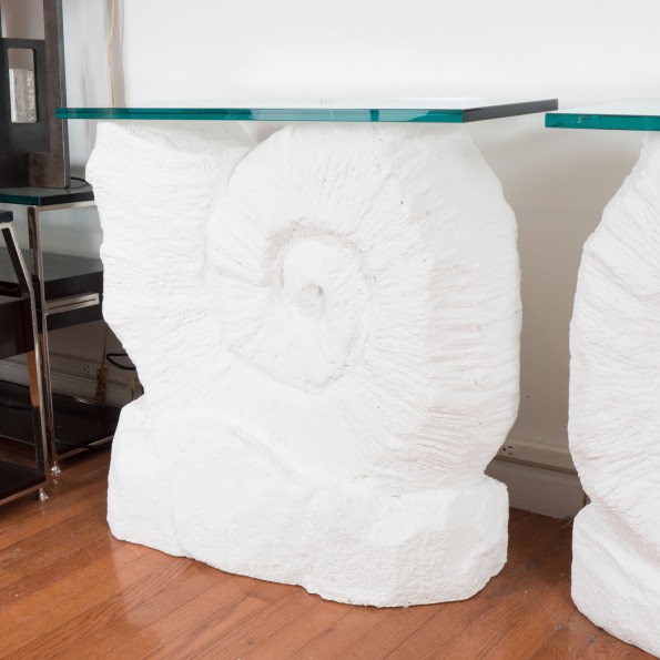 Pair of nautilus shell console tables