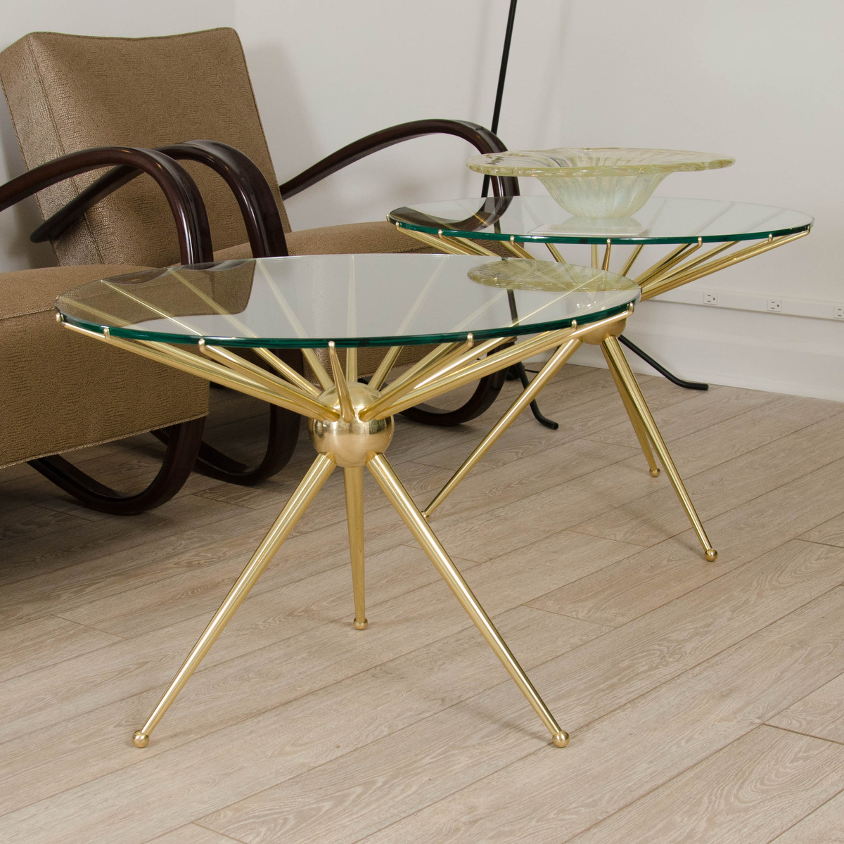brass spoke form side table