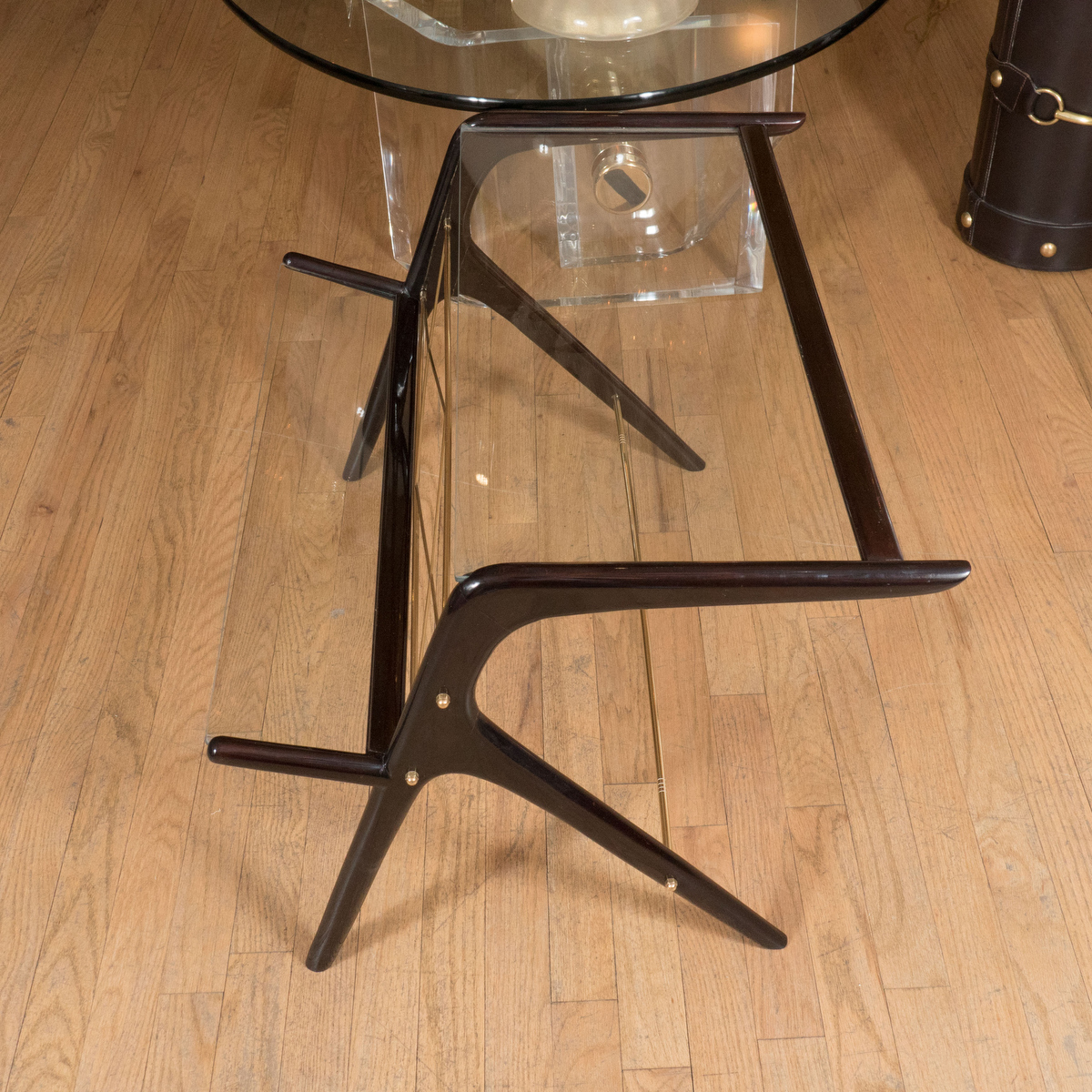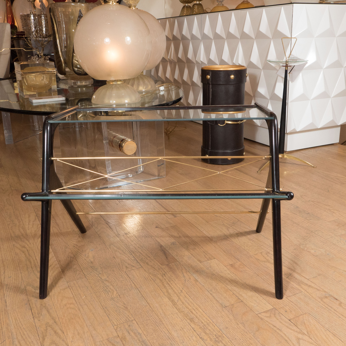 Ebonized wood and glass magazine rack/ side table