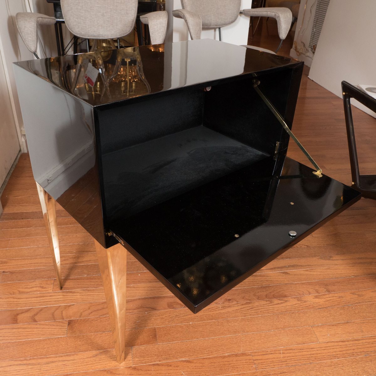 Pair of black lacquered side tables