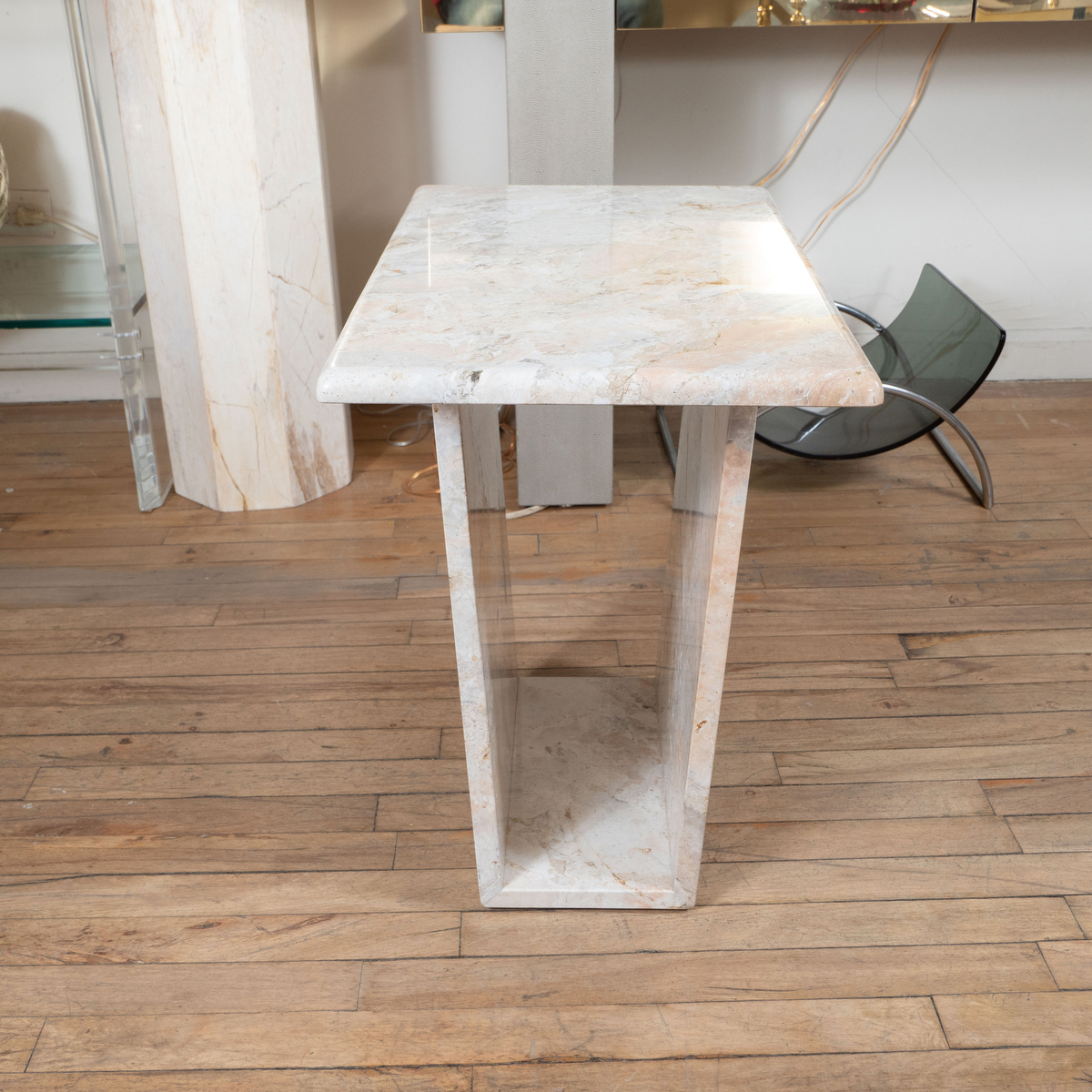 Pair of rectangular marble side tables