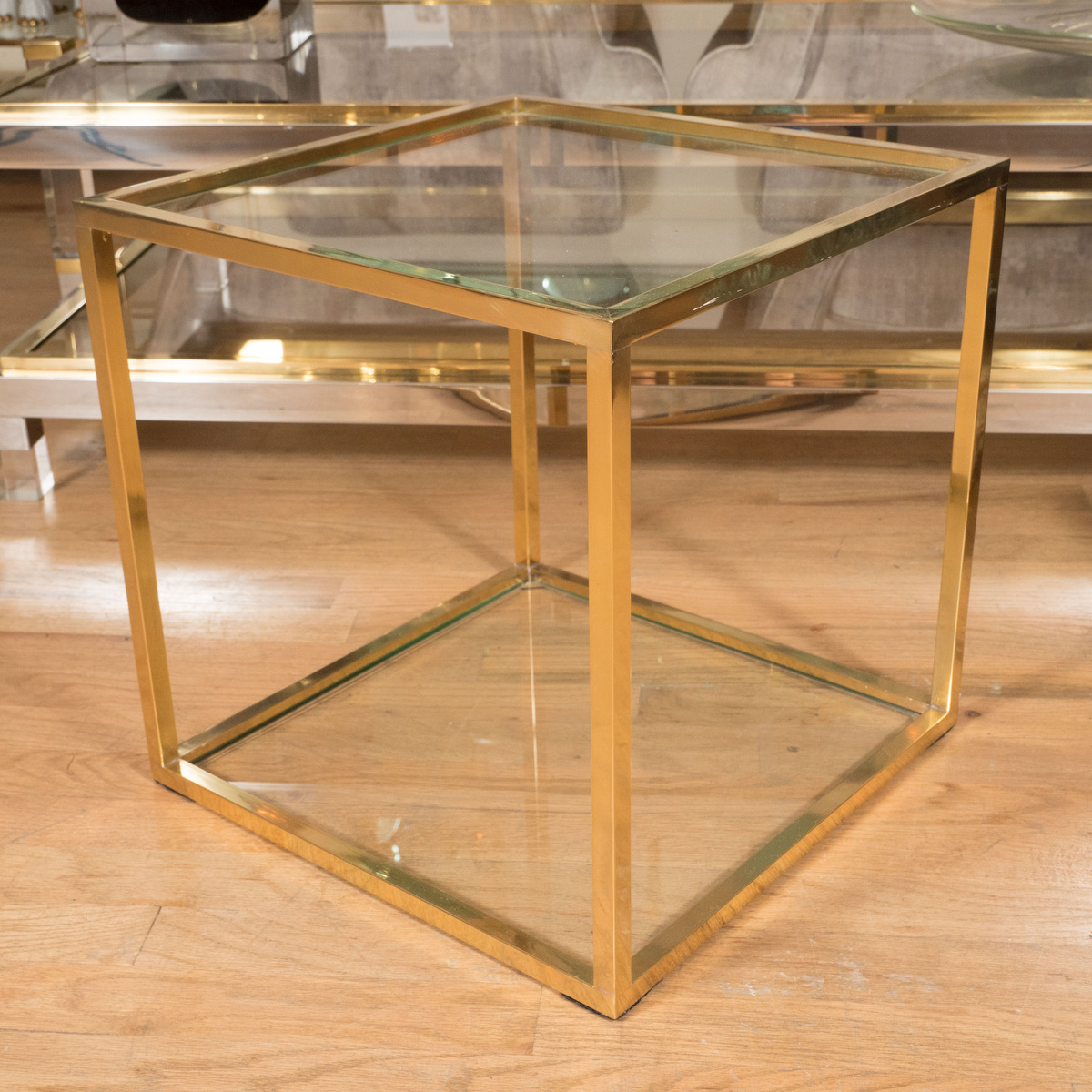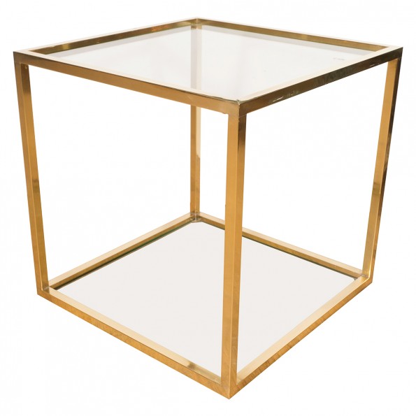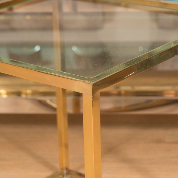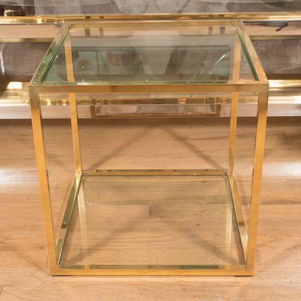 Petite square brass glass side table