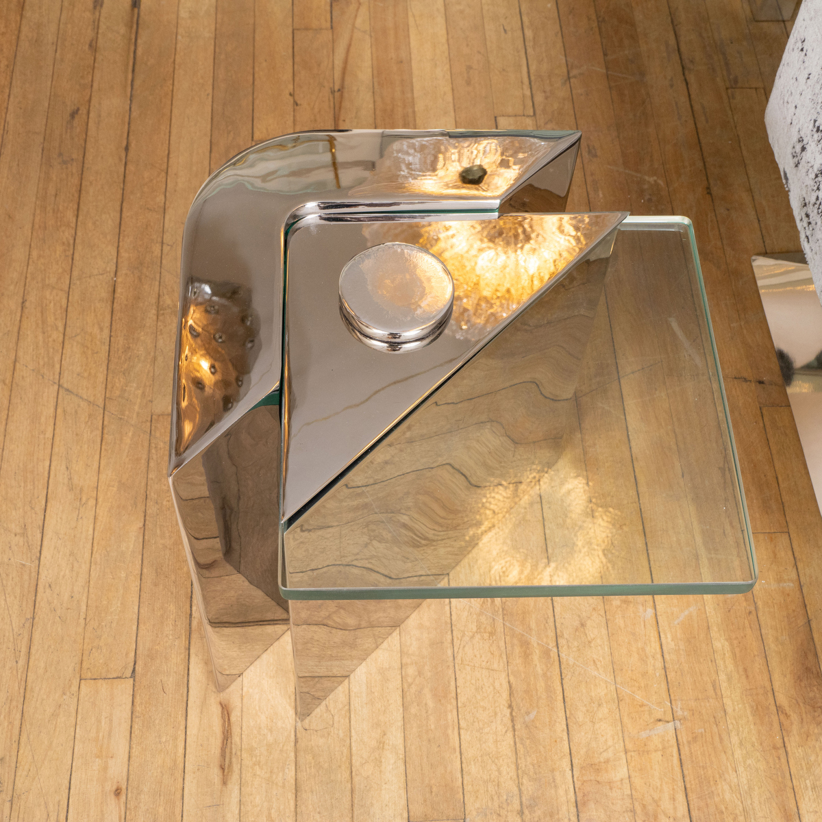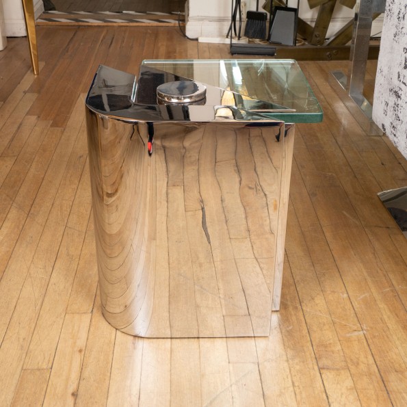 Polished nickel angular cantilevered side table